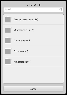 When you choose “Load Image” from the Background menu, a file selector will appear. Use the listing to browse to the image file you want to load into Pixelism.