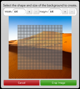 Once you have selected the image file to load, the Crop Image dialog will appear. Using this, you can select the region of the image to load as well as the number of Pixels you want the resulting canvas to have. To select a region of the image, drag the selection (the gray boxes) where you want them to be an use a “pinch” motion to resize the selection. If your selection is off of the image's area, the resulting area on the drawing canvas will be transparent.